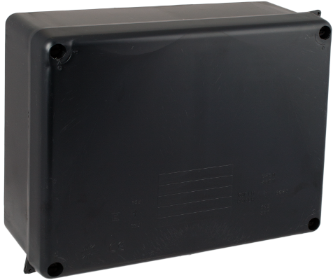Boîte étanche de connexion 220 x 170 x 80 mm sans cônes. Couleur noire.IP65. IK08. Fermeture à vis 1/4 de tour. Scellable.