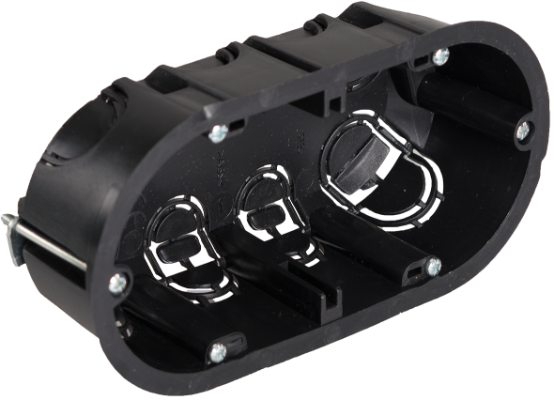 Boîte dappareillage pour encastrer dans une cloison sèche. Pour 2 modules. Fixation avec griffes en métal.Dimensions pour encastrer 140 x 68 x 46 mm. Avec 4 entrées pour tube Ø 25-20 mm. 4 entrées pour tube Ø 20-16 mm. Utilisez une couronne Ø 68 mm. Couleur noire.
