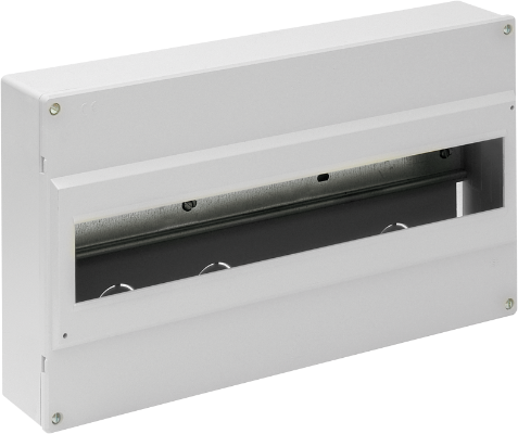 Coffret de distribution de surface de 18 modules scellables.Couleur blanc. Dimensions extérieures 348 x 192 x 68 mm.